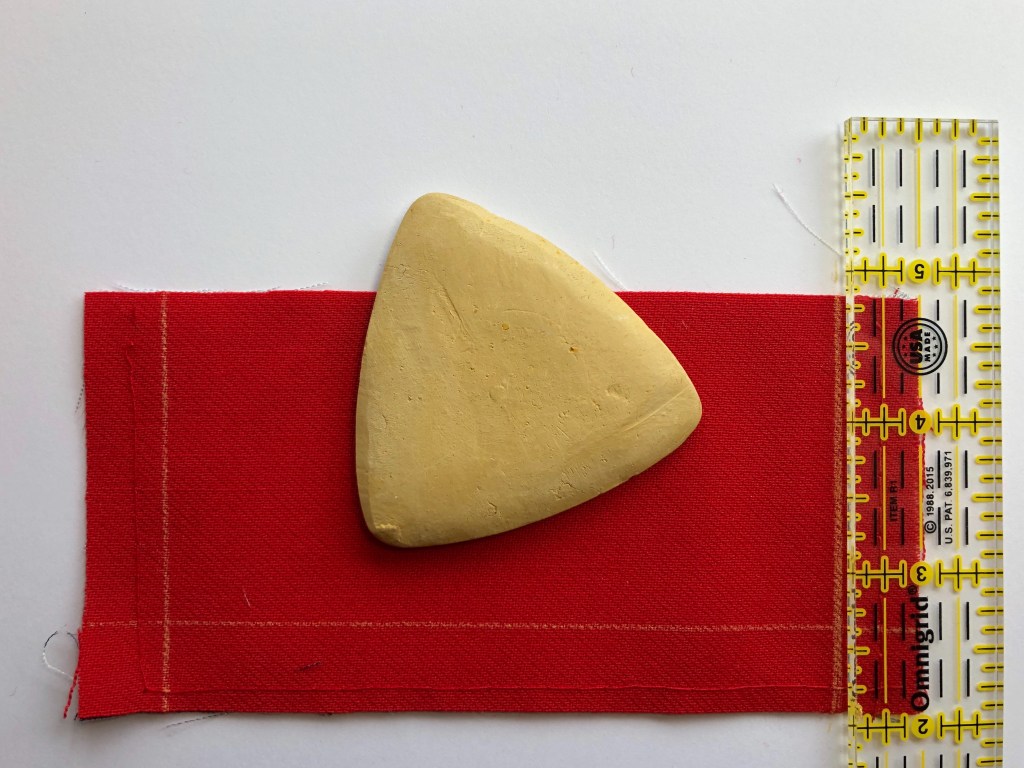 Next, using a quilting ruler, mark 1/2″ from the edge. on all the edges where the trim will be applied.